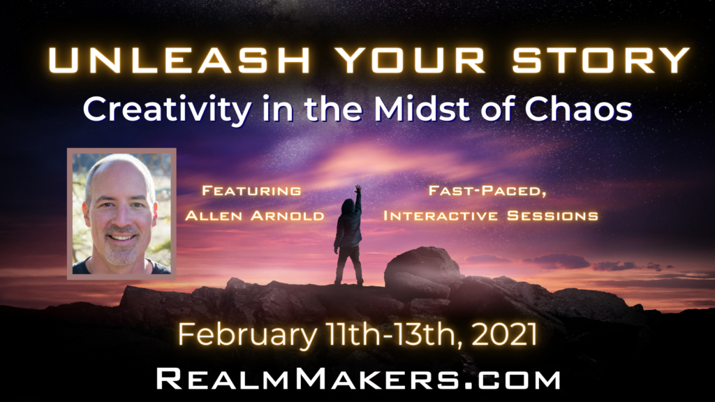 Join us and instructor Allen Arnold February 11th-13th, 2021 for five fast-paced, interactive sessions that will challenge and change the way you view your writing, the publishing industry, past limits, true success, and your irreplaceable role as a storyteller. This is a live and interactive event that will take you on a mind-blowing journey down the rabbit hole of ideas and imagination!